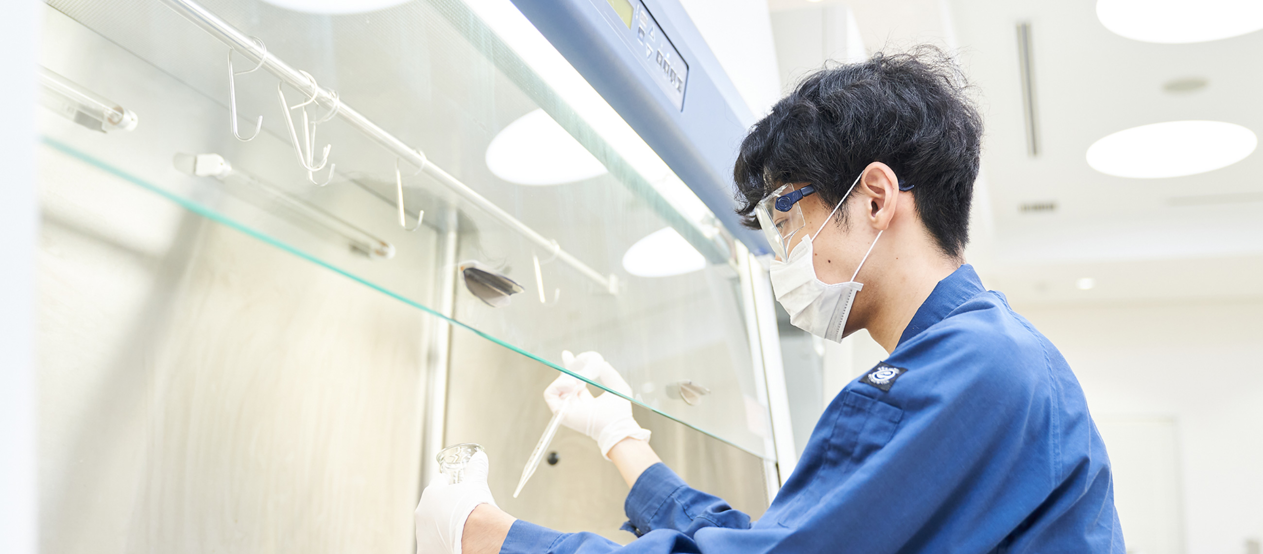 - 石川県出身。大学院薬学研究科修了。2021年の入社以来、医薬品の有効成分である原薬の製造法開発と技術移管に従事。